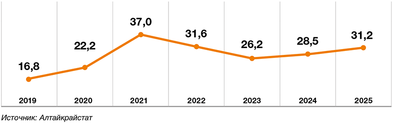 Именно это движение на рынке ощутили сибирские и прежде всего алтайские сельхозпроизводители начиная с января 2026 года. Напомним, что на Алтае цены пошли вниз с августа 2025 года. Тогда его продавали в среднем по 34 тысячи рублей за тонну. В декабре разница в цене составила почти 10 тысяч. С этого уровня цены оттолкнулись. Пошел долгожданный для сибиряков подъем.